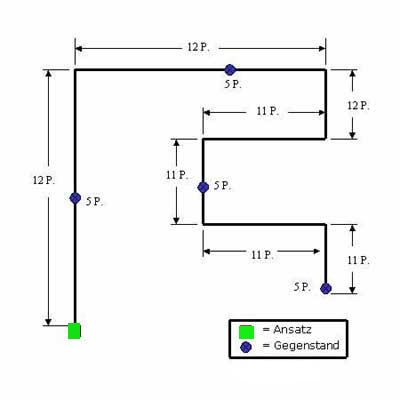 Anfangspunkt der Fährte gelegt werden. Der letzte Gegenstand liegt am