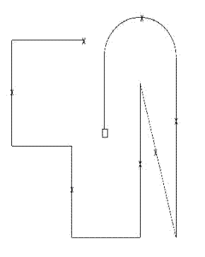 alten Fremdfährte, die sieben dem Gelände angepasste Winkel, davon